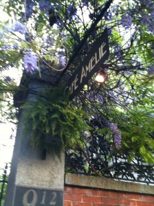 catch sight of the wisteria blooming on Royal in the Princess of Monaco courtyard. She pulls up on the sidewalk under it and stops to admire it.
