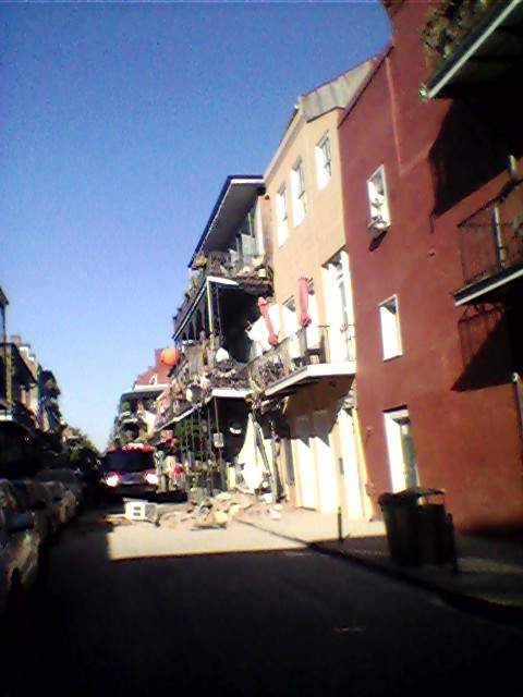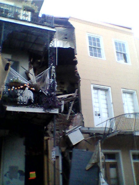 Exterior wall on side of building between Saint Ann and Dumaine collapses and spills into the street. Luckily, no pedestrians were underneath at the time. Deputy Sheriffs were a half block away and called fire and secured the street in minutes.