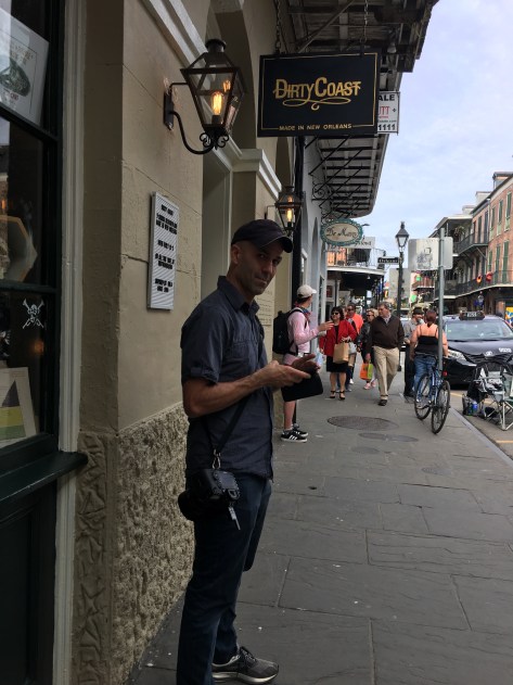 Today, I ran across two old friends, both working in the Quarter. The great photographer and musician Zack Smith was doing a shoot for Dirty Coast on Royal. His photography spans all of the different cultures that Southeastern Louisiana encompasses, and his work with the indie rock band, Rotary Downs is worth a deep listen. It’s on my regular rotation.