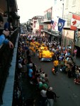 I remember the first one in 2008 where I met it in the Square and then again at “Joanie on a Pony,” the golden statue now found on Decatur , where the parade ends and a few dozen bystanders shared king cake with the cold and wet but jubilant masquers who had pulled off their first parade.