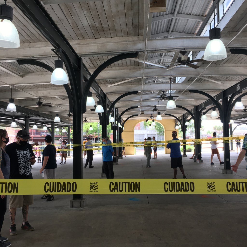 Based on all of that, even though I am more in favor of these ideas than others, I’d suggest that the City might start with simpler ideas and then ask a lot of questions. Maybe start with adding protected bike lanes in and out of the Quarter, work on safer bike parking (more and more business owners are cutting bikes locked up for a shift from their gallery posts and few employers offer safe parking), add many more public transportation options for workers and locals, come up with some dynamic parking ideas for residents and workers, deal with illegal STRs and noise infractions- and maybe start to test these ideas by using their French Market property first. A French Market property project could do a lot to calm residents fears and can also test out ideas before those unintended impacts across a larger area cripple and divide the residential and business community of the Quarter. I’ve jotted down many ideas on my blog previously for the French Market space that including adding a storefront library, community health agencies, maybe an evening Louisiana-id carrying-only splash pad, pop up food truck events, and lots more of what we saw this week: the sheds and public space used for sharing regular city departments information and health work as it was for the COVID site this last week with hundreds in line in the market space to get their free test.
