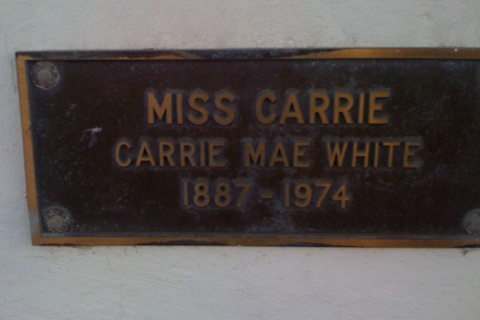 On the marble steps of 924 Orleans, see the plaque for Miss Carrie. There is a great description of her taken from the marvelous book 912 Orleans, The Story of a Rescue by Walter Lowry (illustrations by Mark Lowry), written about the 1960s renovation of the family home: