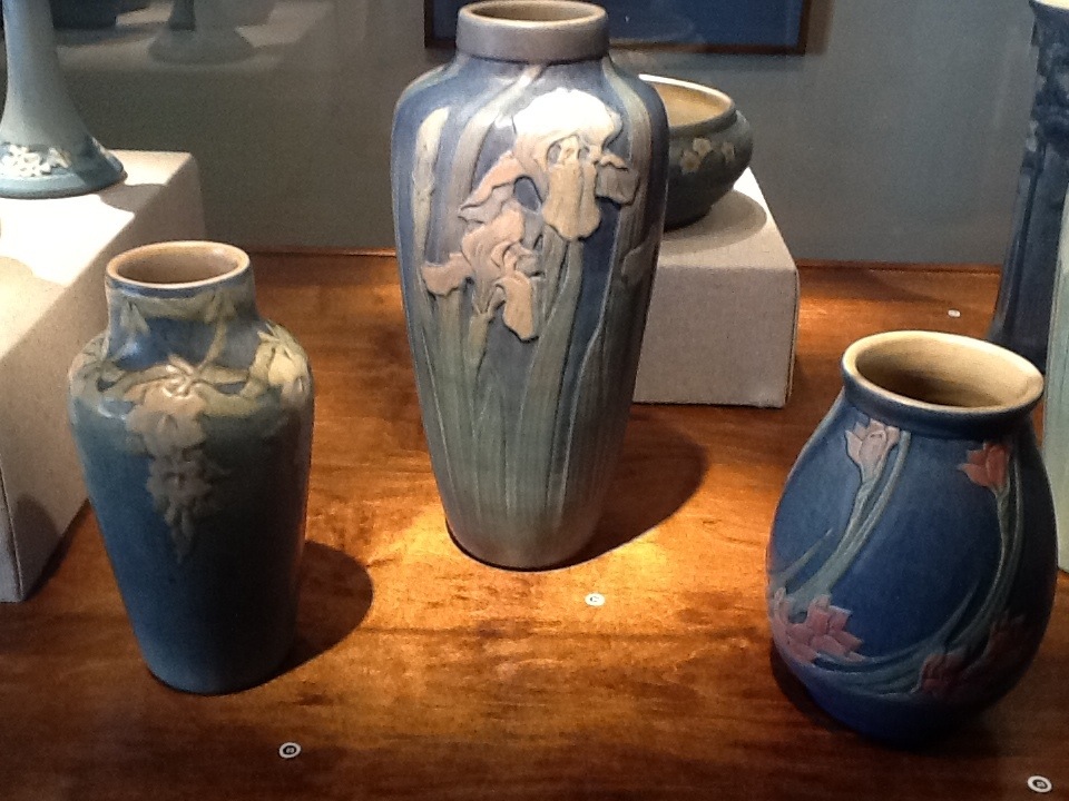 The arts and crafts movement itself was an artistic response to the industrialization of America and also a way to allow women to work on their degree. Having grown up also in Ohio, I was already familiar with Rookwood Pottery, which was the most well known of the arts and crafts pottery-a friend in Cincinnati has Rookwood fireplace detail in her apartment, which is not that unusual to find there….
